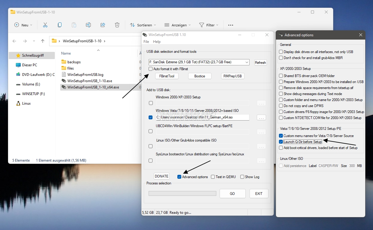 Once you’ve selected the desired operating systems, click on the “GO” button to start the installation process. WinSetupFromUSB will format the USB drive and install the chosen operating systems, making it bootable and ready for use as a multiboot device. Follow any prompts or instructions the application provides throughout the installation to ensure a smooth process.